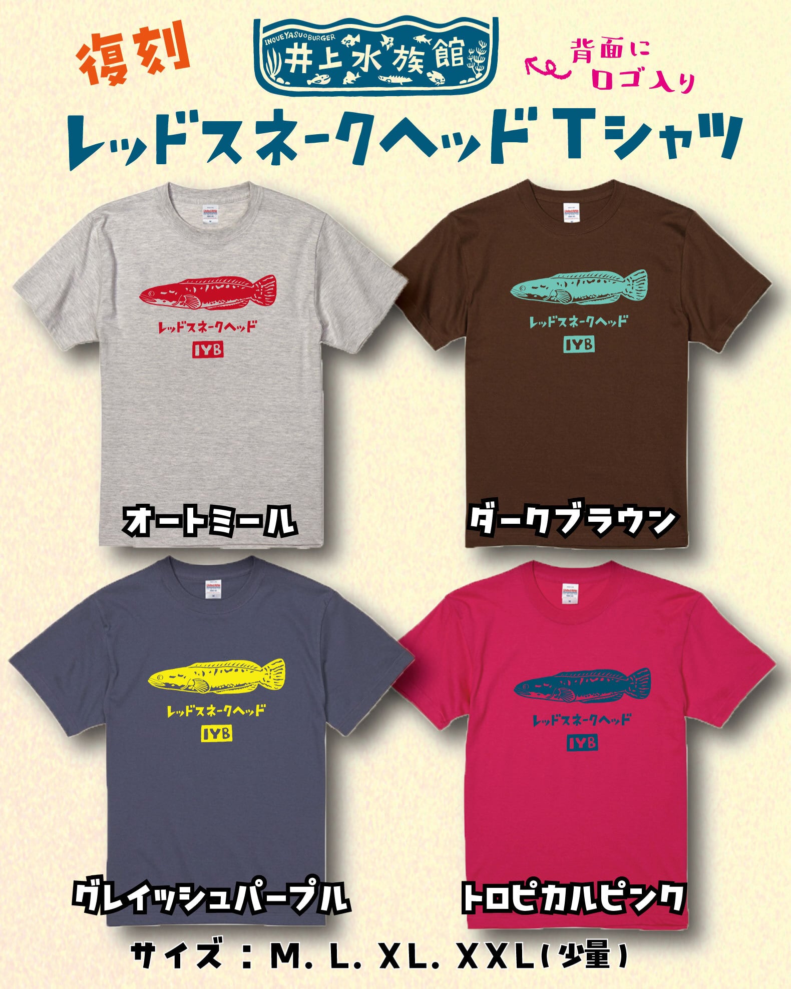 井上水族館シリーズの第一弾として登場したレッドスネークヘッドTシャツが新色で再登場です。